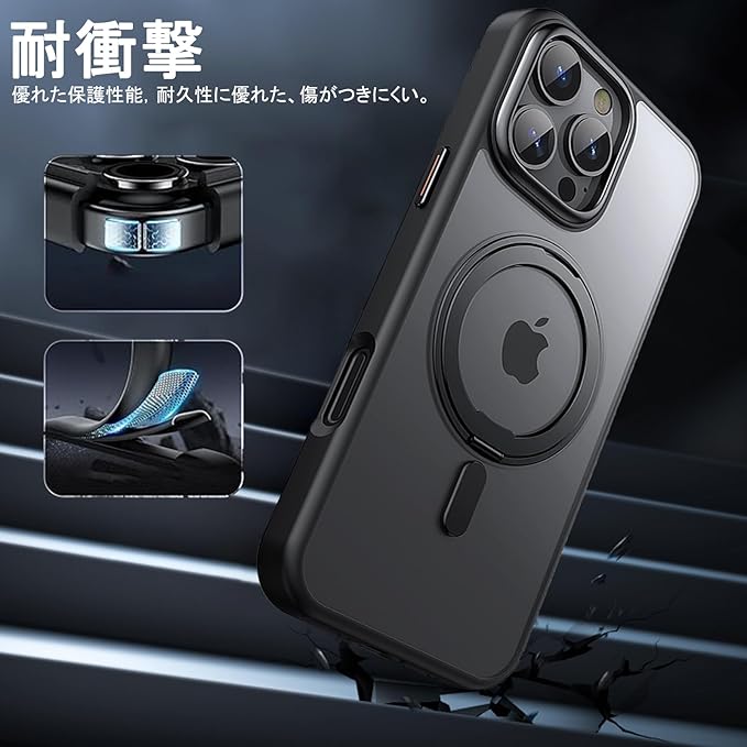 PRODELI ケース For iPhone 16 Pro Max 専用 カバー 360 回転スタンド MagSafe対応 米軍MIL規格 耐衝撃 指紋防止 ワイヤレス充電対応 落下防止 レンズ保護 擦り傷防止 マット感 リング マグネット搭載 スマホケース 対応 6.9インチ アイフォン 16 プロマックス 用 保護カバー(透明)