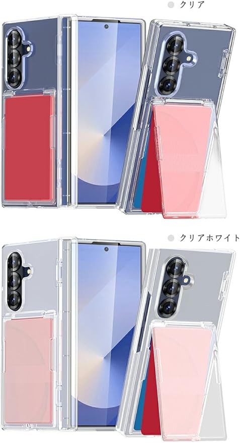Galaxy Z Fold7 クリア ケース カバー 折りたたみ型 クリア 透明 カード収納 側面 シリコン+ 背面プラスチック シンプル お洒落 Samsung サムスン ギャラクシー Z フォー