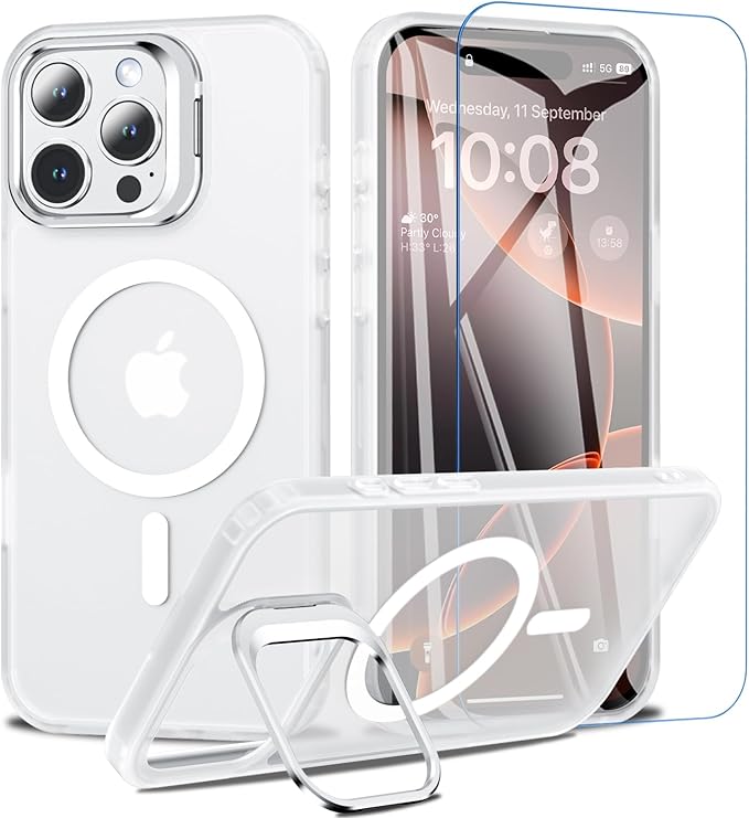 BESINPO iPhone 16 Pro Max ケース [ガラスフィルム付き・MagSafe対応・スタンド機能] アイフォン16プロマックス ケース 縦横両対応 調整可能 半透明 黄ばみなし 指紋防止 いphone16promax ケース 耐衝撃 耐久性 マグネット搭載 マグセーフ対応 隠しスタンド ストラップホール iPhone 16 Pro Max ケース 6.9インチ対応 半クリア
