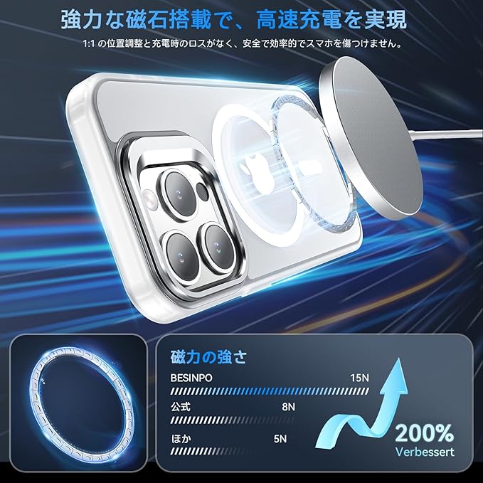 材質 ポリカーボネート(PC), 熱可塑性ポリウレタン(TPU),亜鉛合金,強力なマグネット搭載,黄変防止素材