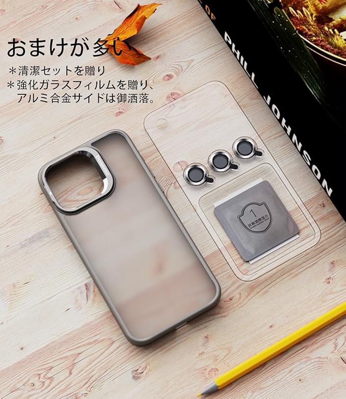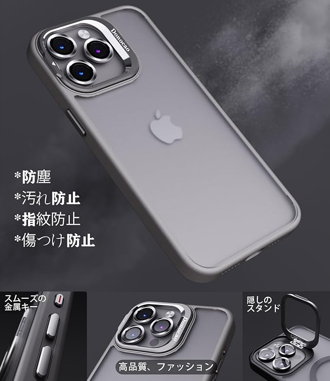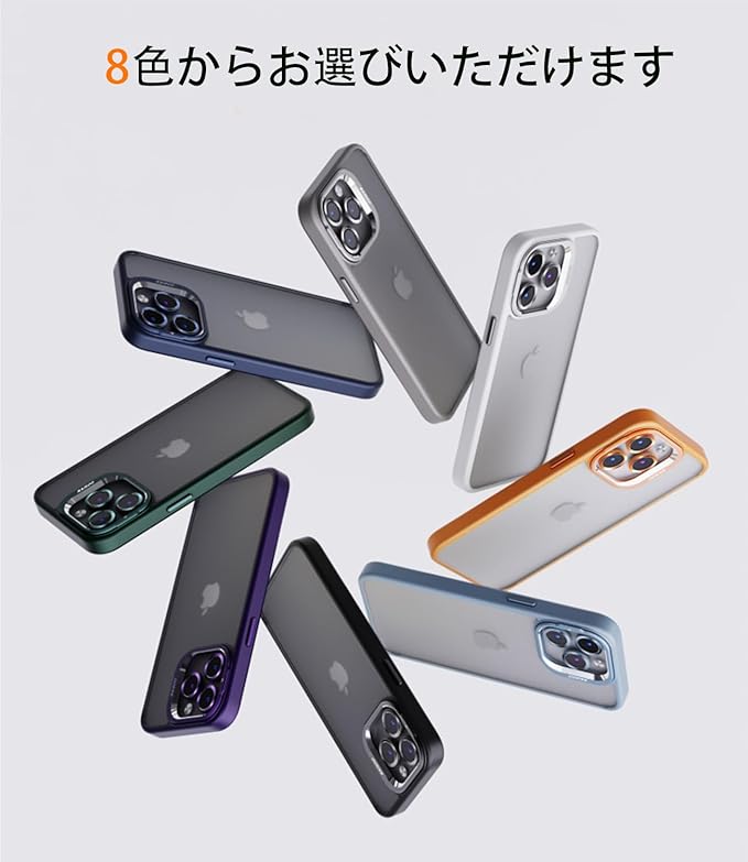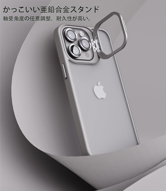*【対応機種と素材】iPhone 15 ProMax対応、サイズ:6.7インチ対応、ケースのサイズ:約縦16 横8.5 厚1.1 cm 主素材:シリコーンサイド、アクリル背面マット感のプレート、合金のカメラ隠しスタンド、メッキ金属ボタン、御洒落な9H強い硬度ガラスレンズを贈ります。御アイフォンをしっかり守れます。