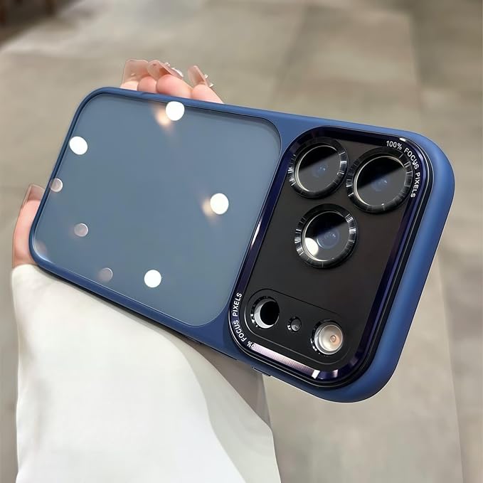 iPhone 17 Pro Max ケース、一体型カメラレンズ保護機能付き、 [ミルグレード耐衝撃防御] 透明バックプレーン保護ケース、iPhone 17 Pro Max 用、ブルー