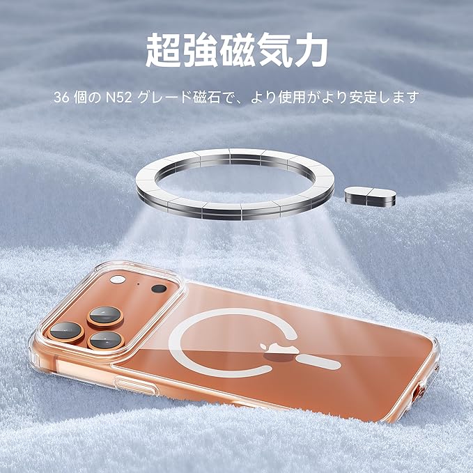 【強力な磁力吸着!】iPhone 17 Pro Max 用 (6.9インチ)。 iPhone 17 Pro Max 用 ケース内部は38個強力なN52マグネットを搭載、超吸着能力でいくら振っても落ちない。また、マグセーフ世代に増える、Magsafe対応スタンド&リングなど大活躍で、リラックスした生活に重宝します。