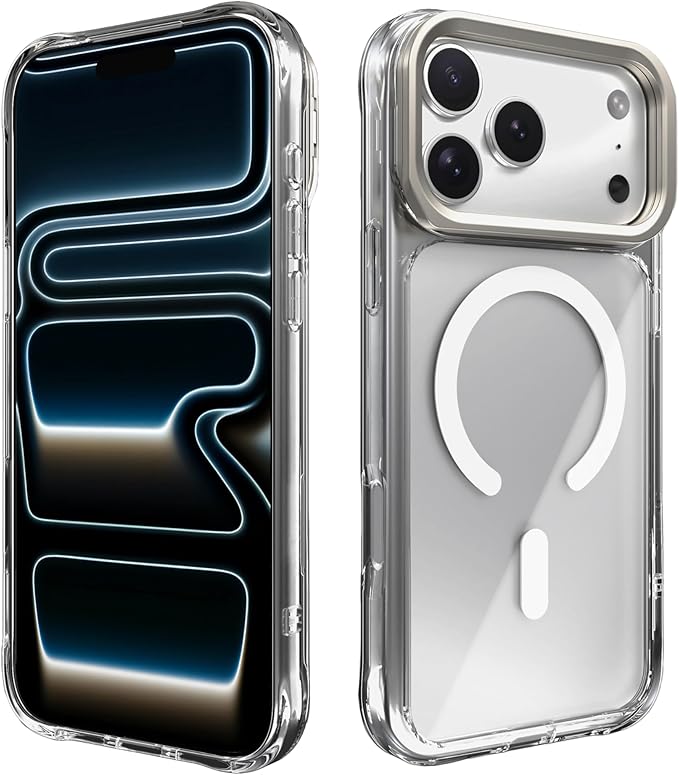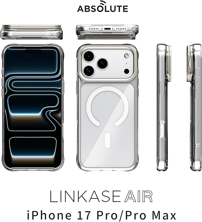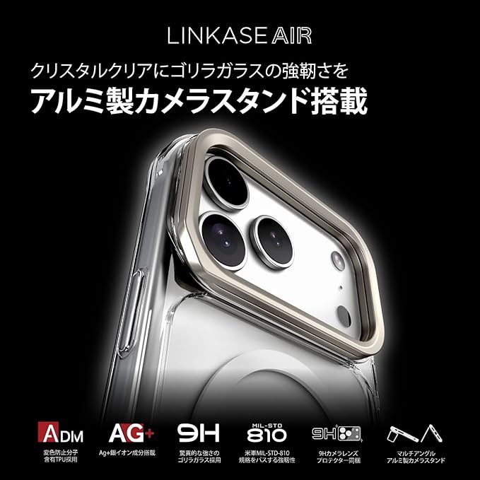 【国内正規品】ABSOLUTE・LINKASE AIR/ゴリラガラスiPhoneケース for iPhone 17シリーズ、アルミ製カメラスタンド搭載、強化ガラス製カメラレンズプロテクター同梱 (クリア, iPhone 17 Pro Max)