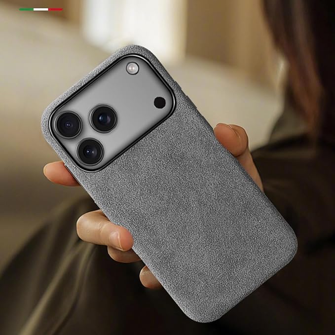 【手に吸い付く触感・滑りにくい】スエード調のなめらかな質感でグリップ感が良く、長時間持っても疲れにくい設計。指紋・皮脂が目立ちにくく、日常使いでも心地よい触り心地です。