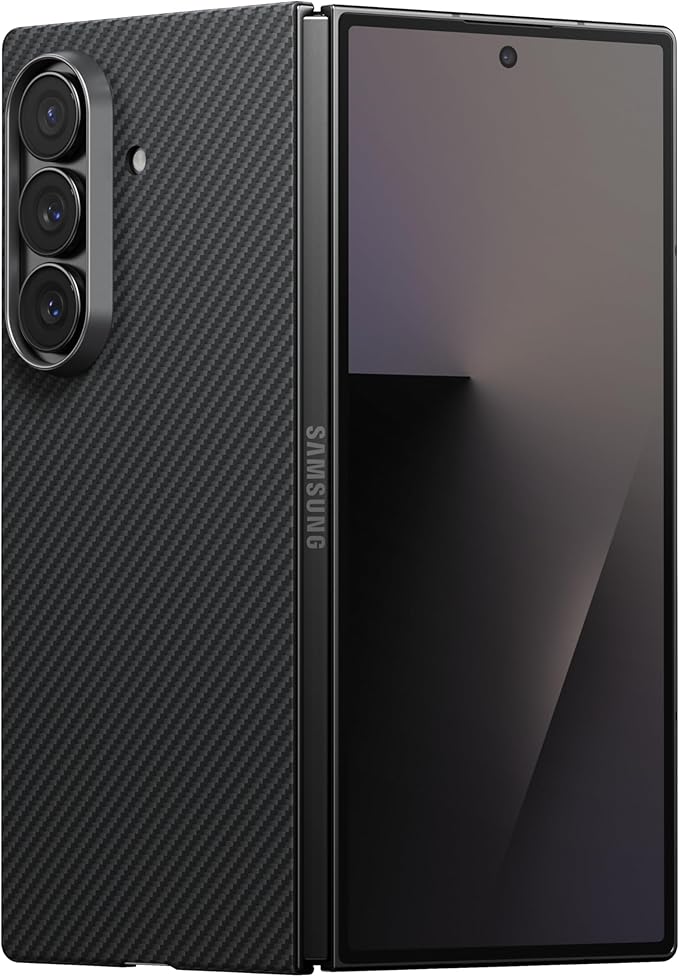 【極薄極軽量】PITAKA Galaxy Z Fold7 ケース Magsafe対応 背面カバー ワイヤレス充電対応 アラミド繊維製 MagEZ Case6 薄型 超軽量 耐衝撃 カーボン風 ミニマリスト シンプル(黒/グレー柄)