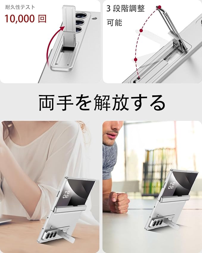 【マグネットで安定・使いやすさ】対応galaxy z フォールド7 ケース。強力なマグネットを搭載し、ヒンジ部分にしっかり吸着。外れにくく、開閉がスムーズで折りたたみ機能に影響を与えません。スタンド付きで角度調整が簡単で、さまざまなシーンで快適に使用できます。