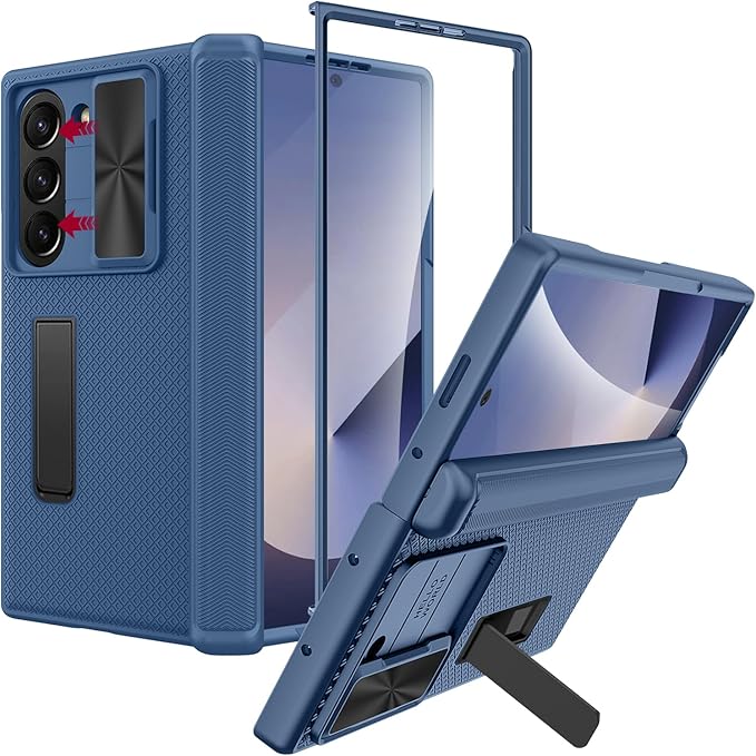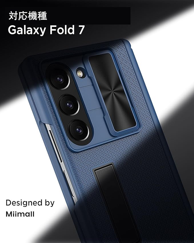 Miimall 対応 Galaxy Z Fold 7 ケース レンズ保護・フィルム付き・スタンド搭載 ヒンジ保護 耐衝撃 滑り止め 頑丈 全身保護 ギャラクシーZ フォールド 7 スマホケース Z Fold 7 Case (ブルー)