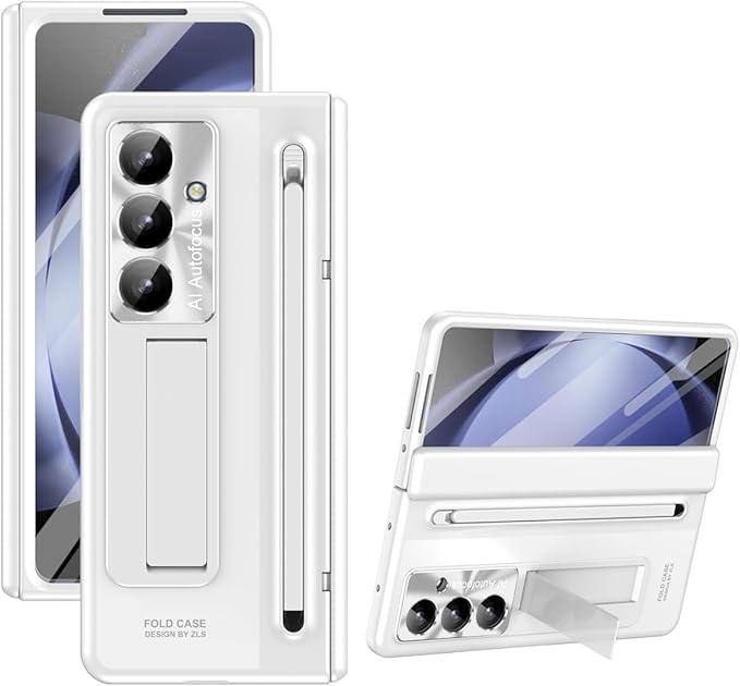【Galaxy Z Fold7専用】多機能統合型 ケース 全面保護+強化ガラスフィルム+きんぞくラッカ+ペン 隠しスタンド機能 ヒンジ保護 ワイヤレス充電サポート 手帳型 携帯カバー 薄型 軽量 キラキラ 衝撃吸収 指紋防止 面白い 個性 二層構造 Beautycatcher - 白