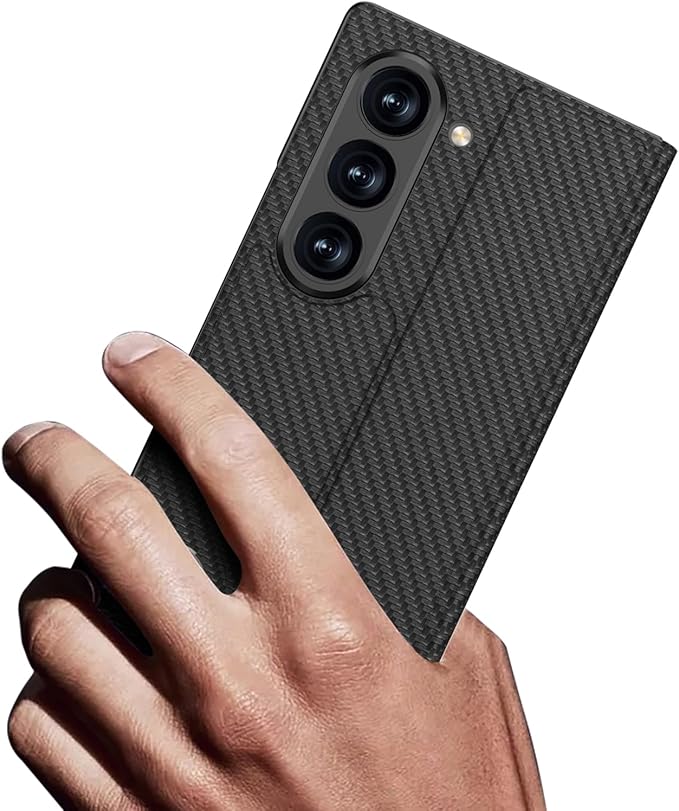 スマホ携帯ケース【Galaxy Z Fold7専用】カードポケット内蔵 強化ガラス一体型 磁気ベルト付き ワイヤレス充電対応 折りたたみスタンド機能 360度防護 超薄軽量 指紋防止 レンズ保護 カバー 人気 耐汚れ 耐衝撃 かわいい 手帳型 面白い おしゃれ 落下防止 Beautycatcher - 炭素繊維の紋