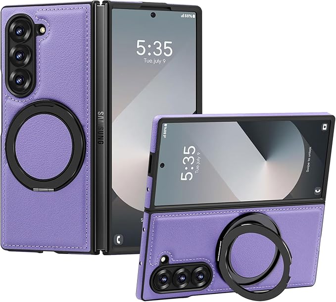 Galaxy Z Fold7 5G 用ケース Magnetic対応 リング付き 耐衝撃 レンズ保護 ギャラクシーゼット フォールド7 5g 用ケース マグネット搭載 360 回転 PC+PUレザー 衝撃吸収 スタンド機能 黄変防止 シンプル スマホカバー 紫 J15-14