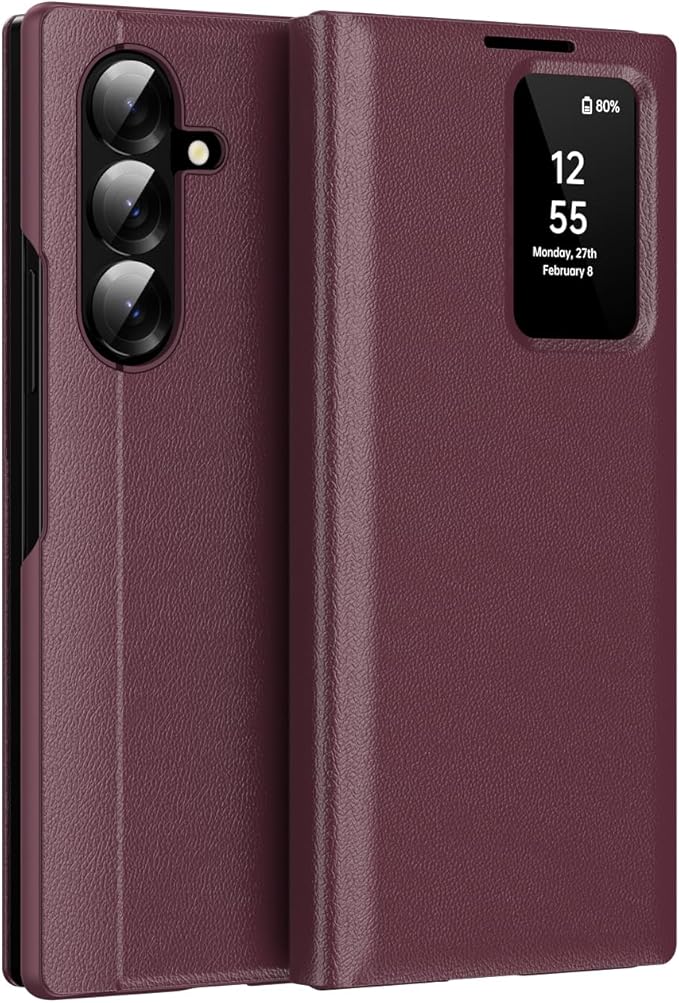 Galaxy Z Fold7専用 PUレザーケース 手帳型 スマートディスプレイ+カード収納 軽量 薄型 ワイヤレス充電対応 ソフト 人気 面白い おしゃれ スマホ 指紋防止 TPUフレーム レンズ保護 耐衝撃 滑り防止 Beautycatcher - ワインレッド