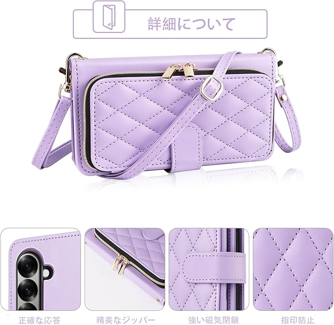 Elisorli for Samsung Galaxy Z Fold 7 手首/ショルダーストラップ カードスロット ジッパー財布 豪華 PUレザー スタンド ための 携帯電話のカバー 持つ ZFold Z7 G Fold7 7Z ウォレットケース しい 大人人気 お洒落 ケース 手帳型 スマホケース カバー スマートフォン 耐久性 耐衝撃 フラップ ストラップホール カード収納 女 むらさき