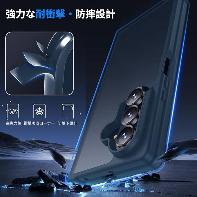 Aunote Galaxy Z Fold7 ケース マット半透明 米軍MIL規格 耐衝撃 耐久性 ワイヤレス充電 黄ばみなし 指紋防止 軽量 スマホケース Galaxyzfold7 ケース カバー ブルー