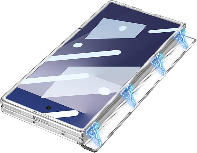 本製品はGalaxy Z Fold7専用設計の透明手帳型ケースです。高品質PC素材の全包囲構造が360度全方位保護を実現し、超薄軽量設計で装着感を最小化します。ヒンジ部の独立保護カバーが開閉動作を安定させ、前面一体型強化ガラス層が外画面を常時防御。背面内蔵の高磁力構造が各種ワイヤレス充電器と完全互換で、微高出加工のカメラ保護構造と四隅補強設計により耐久性を向上させます。