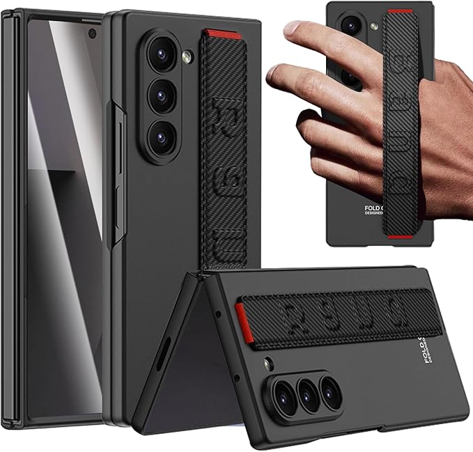NINKI 適応 Galaxy Z fold 7 ケース [SC-56F|SCG34] ハンドバンド PCフレーム フィルム一体型 衝撃保護 レンズ保護 サムスン ギャラクシー フォールド 7 5G スマホ カバー (カーボン)