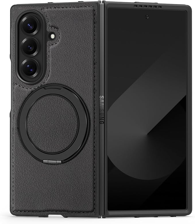 本製品は【Galaxy Z Fold7専用】のスリムケースで、超薄超軽設計で本体の質感を損なわず、PC 素材とライチ柄レザー、柔軟 TPU フレームの複合構造が 360 度全方位保護を実現します。表面は耐摩耗性に優れ指紋が付きにくく、四隅補強構造で落下衝撃を分散。金属製回転スタンドはスタンド・リング機能を兼ね備え、磁気吸着式ワイヤレス充電に対応。レンズと画面を高出しで保護し、独立式キーと精密フィット設計で使い勝手が良く、簡単に装着できる実用的なケースです。