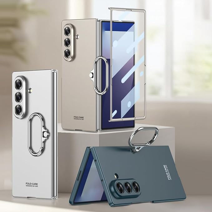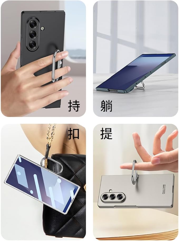 Galaxy Z Fold7完全対応の折りたたみ専用手帳型ケースです。高品質PC素材の超薄構造で端末の軽快さを維持しつつ、前蓋に一体化した強化ガラスが外画面を完全保護。精密設計の金属リングが携帯時の安定性を高めるとともにスタンド機能を提供し、独立金属ボタンが確かな操作感を実現。画面端の保護リムとカメラガード構造が損傷リスクを軽減し、非干渉設計でワイヤレス充電を完全サポートします。