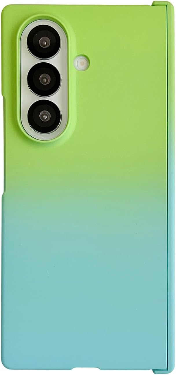 ケース 【Galaxy Z Fold7専用】グラデーション 超薄 超軽量折りたたみ ヒンジ保護カバー 360度防護 防指紋加工 ワイヤレス充電対応 レンズ保護 マットの表面 肌触感 人気 衝撃吸収 手帳型 滑り防止 スマホ 可愛い 面白い フリップ かわいい おしゃれ Beautycatcher - 緑-青