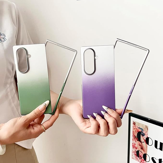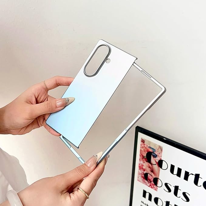 【Galaxy Z Fold7専用】超薄メタリックグラデーションケース 360 全周保護&ワイヤレス充電対応 軽量 マットの表面 人気 携帯電話 カバー レンズ保護 滑り防止 指紋防止 スマホ 可愛い 面白い おしゃれ フリップ Beautycatcher - 銀-空色