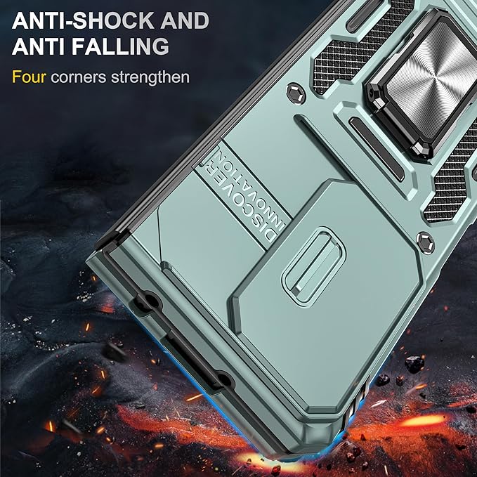 対応 Galaxy Z Fold7 用の ケース リング付き スライド式カメラカバー 耐衝撃 スタンド機能 車載ホルダー レンズ保護 ギャラクシーZ フォールド7 用の スマホケース PC TPUバンパー 防塵 人気 落下防止 滑り止め 指紋防止 携帯カバー 緑 K320