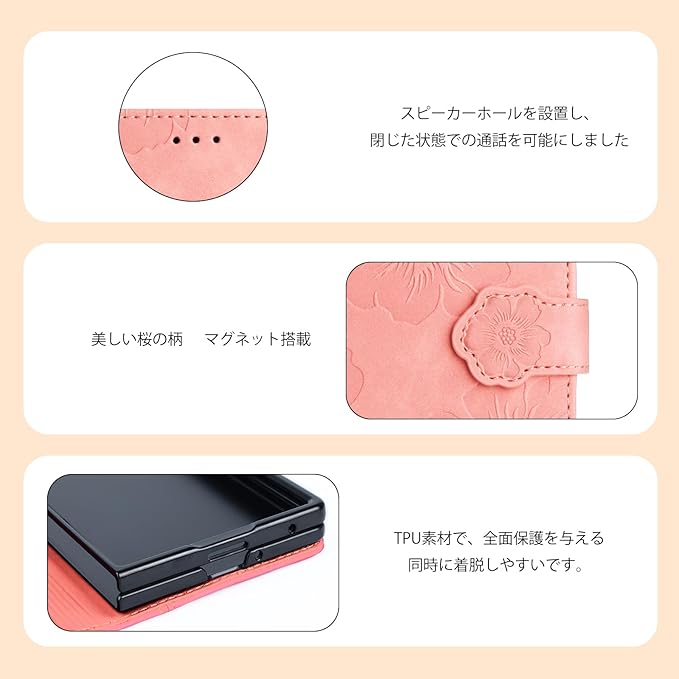 CASAFUNY Galaxy Z Fold7 ケース 手帳型 人気 スマホケース ギャラクシーZフォールド7 SC-56F SCG34 ケース 手帳型 おしゃれ かわい い 美しい桜の柄 携帯カバー 耐衝撃 本革レザー カバー 軽量 お洒落 スマホカバー カード収納 マグネット式 スタンド機能(8インチ)ピンク