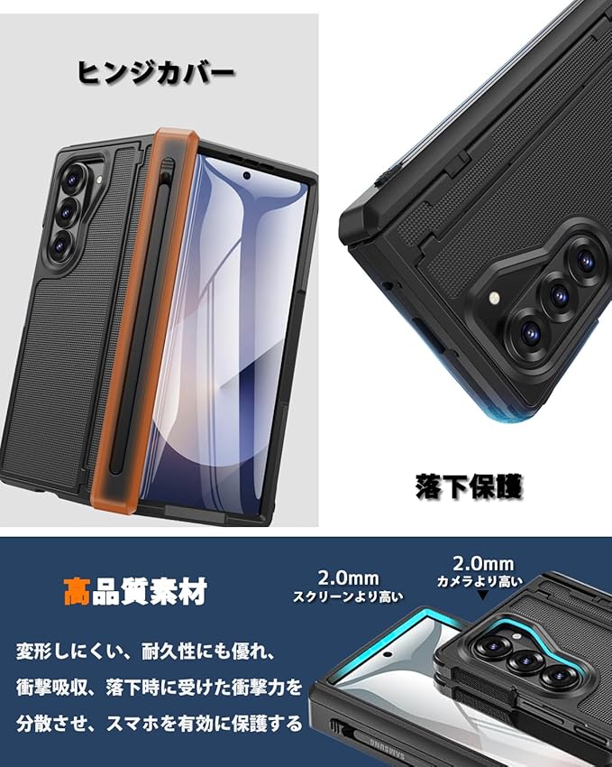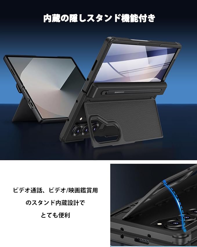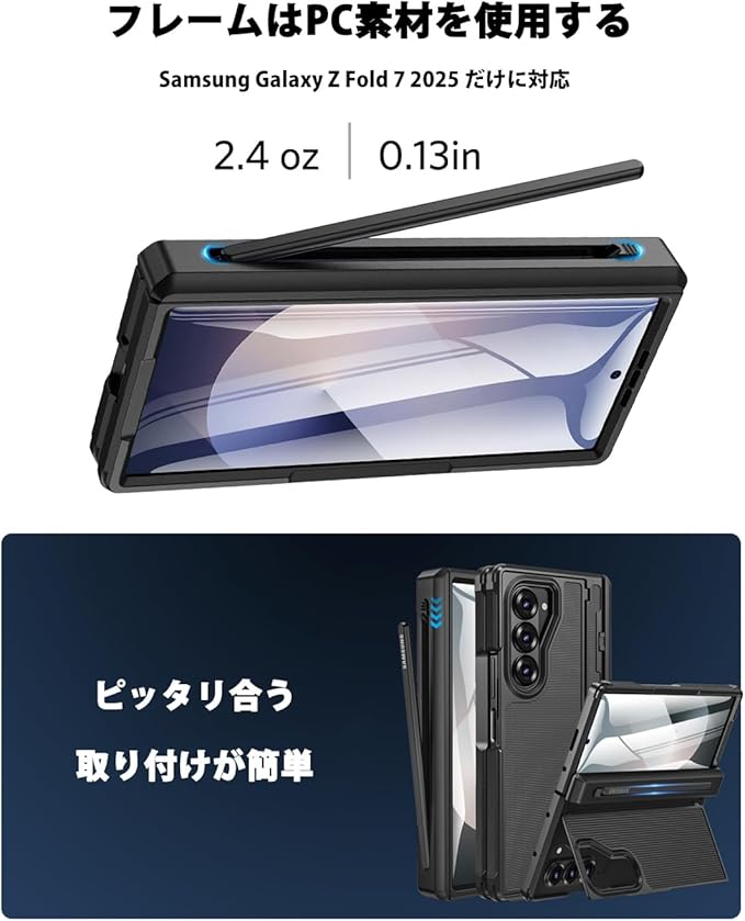 NINKI適応galaxy z fold7 ケース [SC-56F|SCG34] タッチペン付き ペン収納でき ヒンジ保護 スタンド機能 PCフレーム 擦り傷防止 折り畳み式 男性向け 人気 液晶フィルム付き 落下保護 精密にアクセス 耐衝撃 純正 ギャラクシーz fold7 ケース (ブラック)