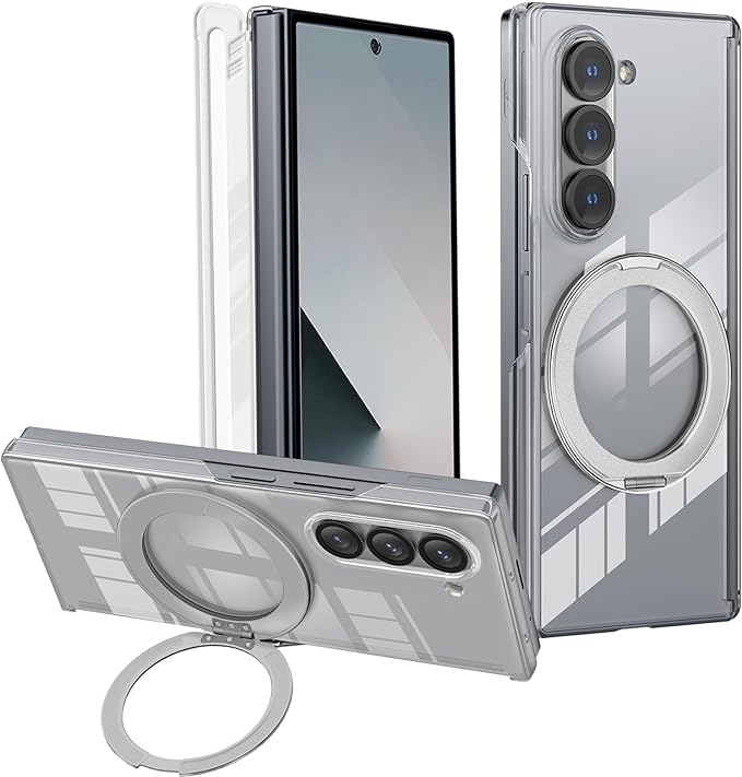 For Galaxy Z Fold7 ケース MagSafe対応galaxy zfold 7 ケース 360 回転スタンド Galaxy Fold7カバー 透明PC折りたたみ Galaxy Zフォールド7 保護ケース 磁気ヒンジ保護 ギャラクシー Z fold7 SC-56F SCG34カバー 薄型 軽量 黄ばみ防止 衝撃吸収シルバー