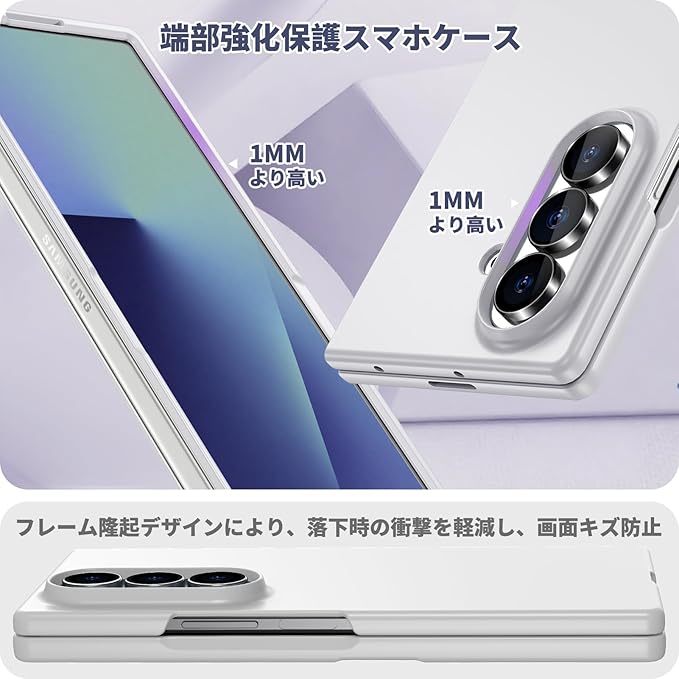 Galaxy Z Fold 7 用 ケース 薄型 人気 軽量 黄ばみ防止 Z Fold 7 スマホケース 衝撃吸収 PC素材 シンプル ハード サムスン レンズ保護 衝撃吸収 耐久 人気 携帯カバー 白 -15-ZFOLD7-06