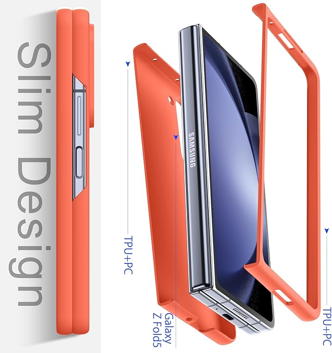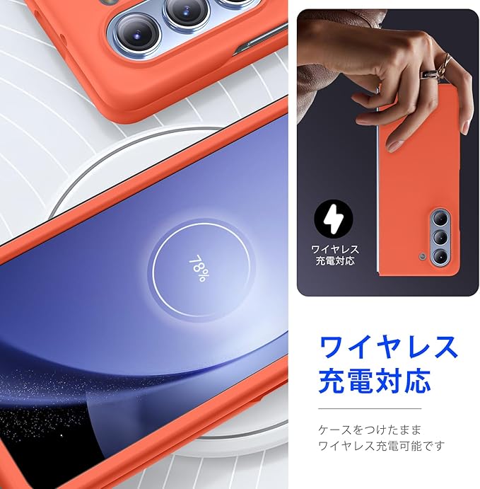 対応 Galaxy Z Fold5 用の ケース リング 耐衝撃 PC 薄型 おしゃれ カメラ保護 軽量 Z Fold5 カバー らさら肌触り フィッ 着脱簡単 指紋防止 軽量 薄型 擦り傷防止 オレンジC94-zfold5-07