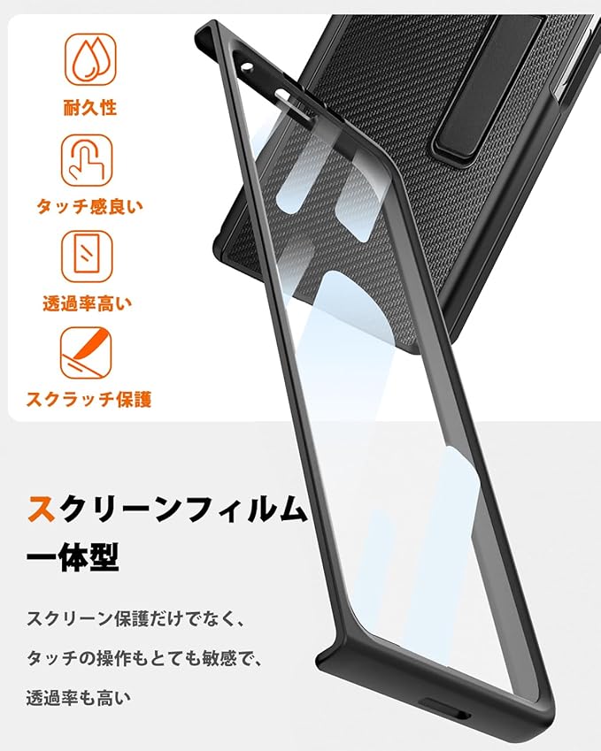 ❤「スクリーンフィルム一体型」:スクリーンを保護するために、Fold7ケースには一体化の9H強化フィルムを搭載してあります。前のスクリーン保護だけでなく、タッチの操作もとても敏感で、透過率も高いです。普通のスマホケースより高級感があります。