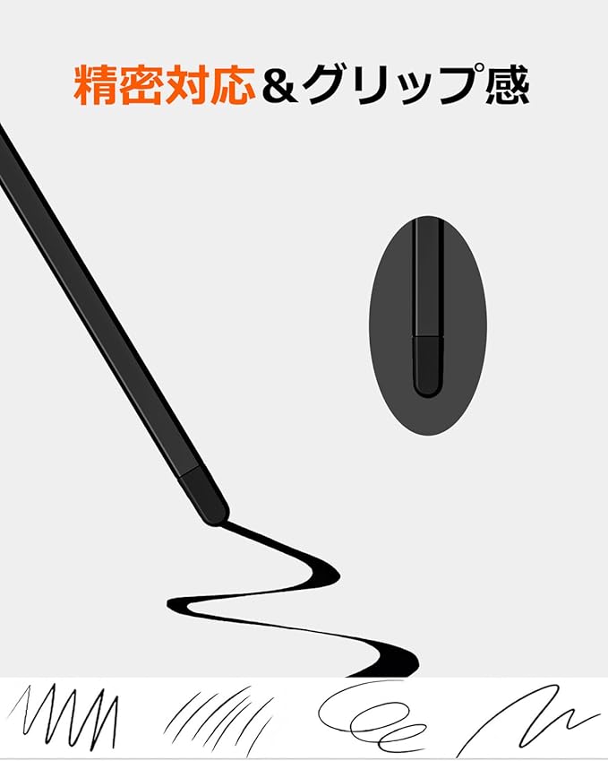 「高感度ソフトシリコンチップ/ペン先」:先端/ペン先は尖っていませんが、柔らかいシリコン素材で滑らかに書けるボールエンドとして作られており、携帯電話の画面を傷つけず、スキップしたり、遅れたりしません。