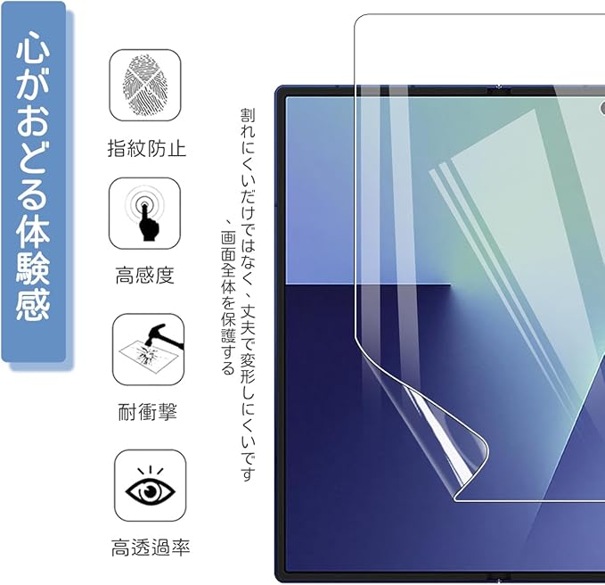 【高い光通過率】改良された高透過率のフィルムで、何も貼っていないような感覚で液晶画面の美しさをお楽しみいただけます。フィルムを貼っていても画面の精細さを損ないません。画面上の操作も違和感なくスムーズに行えます。