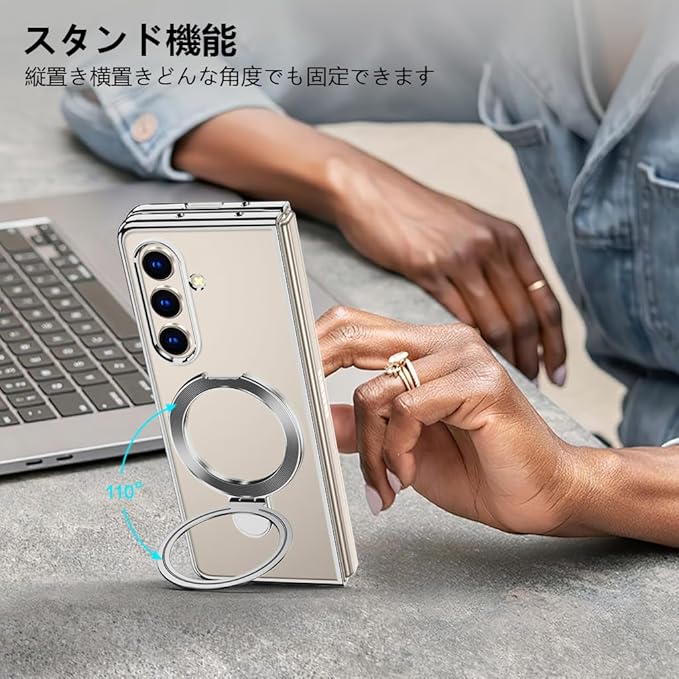 Galaxy Z Fold7 用 ケース リング付き クリア メッキ加工 耐衝撃カバー スタンド機能 車載ホルダー対応 PC 透明 軽量 電気メッキ 折りたたみ おしゃれ 一体型 ワイヤレス充電 ハード ギャラクシーZ フォールド7 5G 用 スマホケース 銀 JP11-40