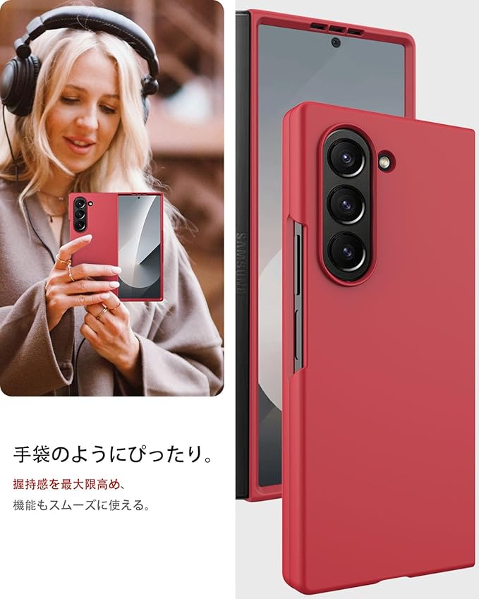 Miimall 対応 Galaxy Z Fold 7 カバー フィルム付き極薄 耐衝撃 Z Fold 7 保護カバー 女性向け 防塵 滑り止め 軍規格 耐久性 ワイヤレス充電 スマホケース Z フォールド7 携帯ケース Case(赤)