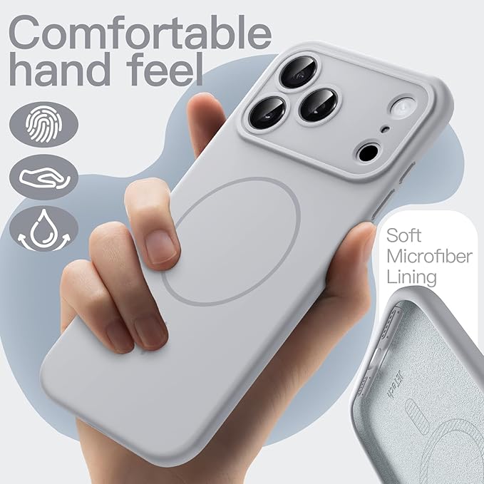 JETech iPhone 17 Pro Max 6.9インチ用 マグネットシリコンケース MagSafeに対応 シルキーソフトタッチ 衝撃吸収スマホカバー カメラレンズ保護 (グレー)