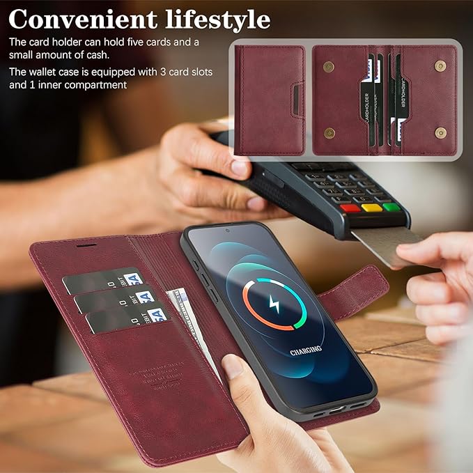 iPhone 17 Pro Max 用ケース Magsafe 対応 あいふおん17 Pro Max 用 ケース 手帳型 マグセーフ 耐衝撃 【分離式3 in 1】 カード収納 ワイヤレス充電対応 フェイクレザー
