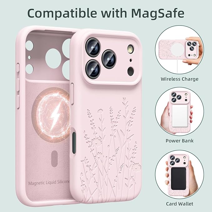 iPhone 17 Pro Max 用 ケース MagSafe対応 全面カメラ保護 液体シリコン いPhone17 Pro Max ケース マグネット搭載 マグセーフ対応 レー ザー彫刻 女性 女の子 かわいい おしゃれ 磁気吸着 滑り止め 耐衝撃 (chalk pink)