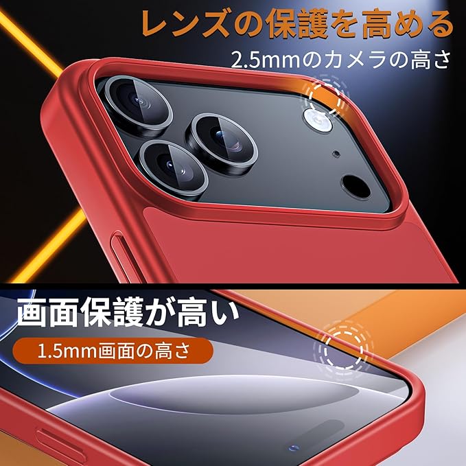 【レンズ保護・損失を軽減】 カメラより2.5mm厚、画面より1.5mm厚で、日常生活において様々な損傷に避ける。スクリーンやレンズの破損リスクを低減、高額の修理費用を節約。このケースとのフィット感を高めるために、購入する前に対応機種をご確認ください。ケース自体に厚みがあり、MagSafeアクセサリーによって充電や吸着することが可能ですが、磁力が弱くなる、ご了承ください。