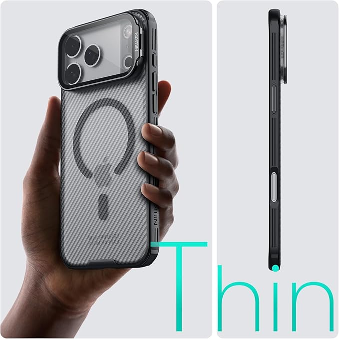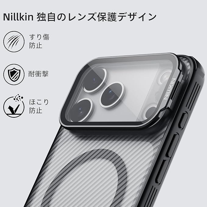 【カメラ保護&隠れスタンド】Nillkin iPhone 17 Pro Max ケース 半透明 MagSafe対応 調整可能スタンド付き カメラカバー ワイヤレス充電対応 マグネットスマホケース 米軍MIL規格 耐衝撃 すり傷防止 黄ばみ防止 軽量 薄型 Qi2.2対応 最大25W高速充電(クリア)