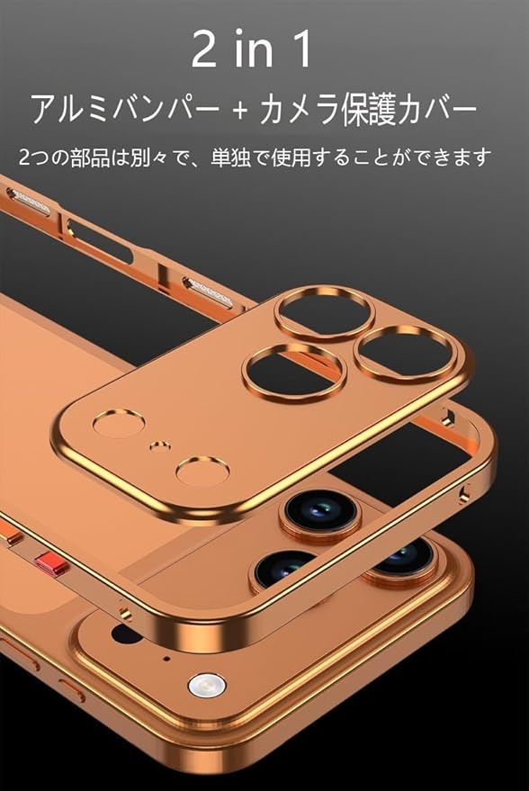 iPhone 17 Pro Max ケース 2in1 アルミ バンパー + カメラ保護カバー付き MagSafe 対応 ワイヤレス充電 いphone17 promax ケース 軽量 薄型 超強放熱 衝撃保護 男女兼用 オレンジ