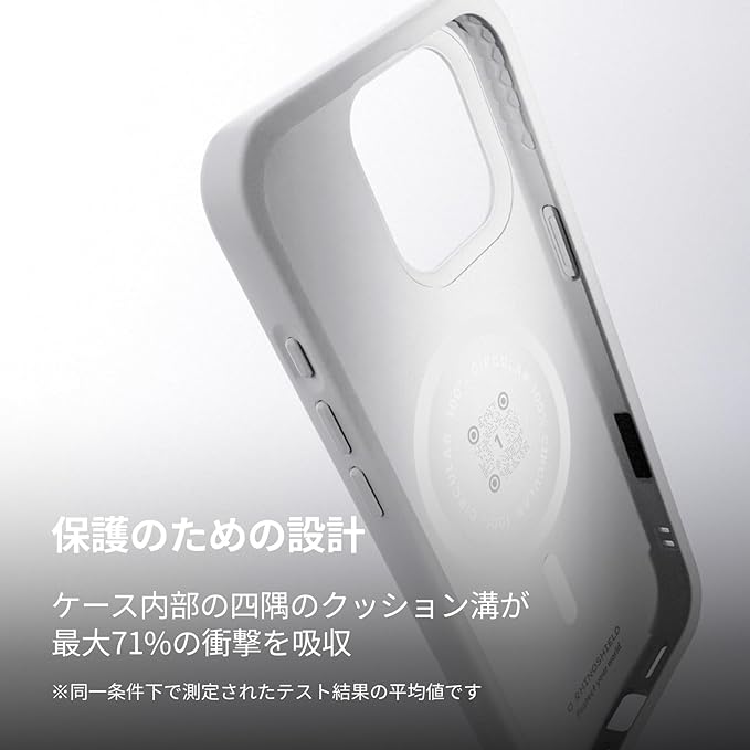 強化された四隅と保護のための設計:落下保護の基準を再定義するこの保護ケースは、ケース内部の四隅のクッション溝が、最大71%の衝撃を吸収します。※同一条件下で測定されたテスト結果の平均値です。iPhone 17 Pro Maxと互換性があります。