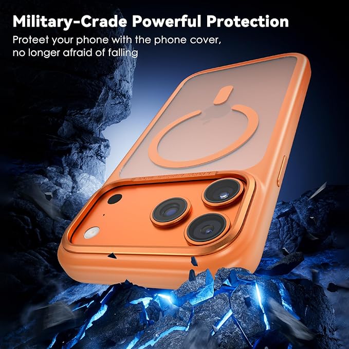 【全方位保護・耐衝撃構造】耐久性のある PC バックプレート+TPU 緩衝層+四隅エアバッグ防護を採用し、落下時の衝撃を効果的に吸収でき、耐落下高度は 16 フィート(約 4.88 メートル)に達します。高さを高めた金属製レンズフレームとスクリーンフレームにより、スクラッチや摩擦から保護し、360 全方位の守りを提供します。