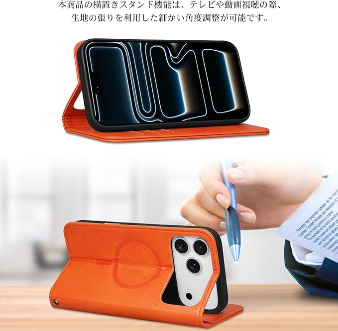 【Keallce】iPhone 17 Pro Max ケース 手帳型 スマホケース カード収納 MagSafe対応 ストラップ付き スタンド機能 マグネット付き PUレザー 耐衝撃 全面保護 いphone17Pro Max カバー 6.9inch オレンジ