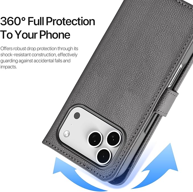 本革 外層取り外し可能 iPhone 17 Pro Max ケース 手帳型 7枚 カード収納 アイフォン17promax カバー レザー カードポケット SUGOIDAN 携帯ケース スタンド機能 ストラップ付き 耐衝撃 アイホン17 財布型プロマックス 全面保護(グレー)