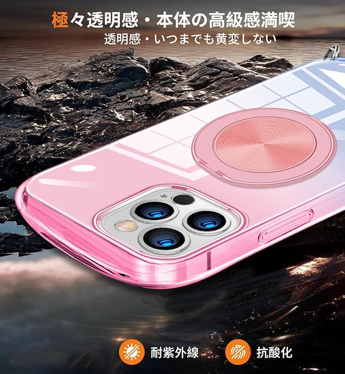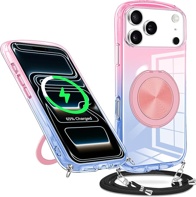iPhone 17 Pro Max ケース クリア グラデーション色 リング付き MagSafe対応 リング アイフォン 17 promax 用 カバー 縄掛け 肩掛け 斜めかけ 透明 TPU 耐衝撃 360 スタンド機能 対応 ケース 韓国 可愛い