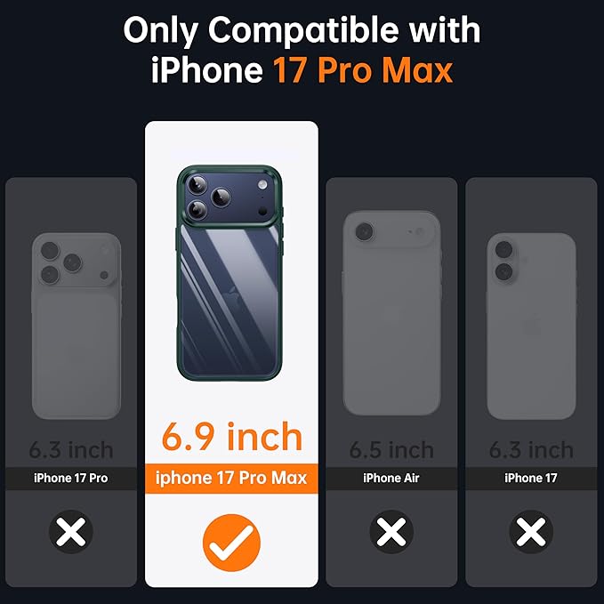 【耐久性・防衝撃保護】iPhone 17 Pro Max対応ケースの四隅には、防衝撃エアバッグが内蔵されており、背面は耐久性のあるハードPC製で、エッジは高品質なシリコン製です。落下や衝撃、正面または隠れた損傷から携帯電話を保護します。