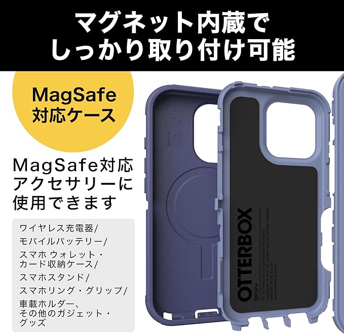 Defenderは多層構造の耐衝撃iPhoneケースです。確かな保護性能で落下の衝撃や汚れ、傷からiPhoneをしっかりと保護します。MagSafe機能に対応し、充電やアクセサリーをスムーズに使用できます。