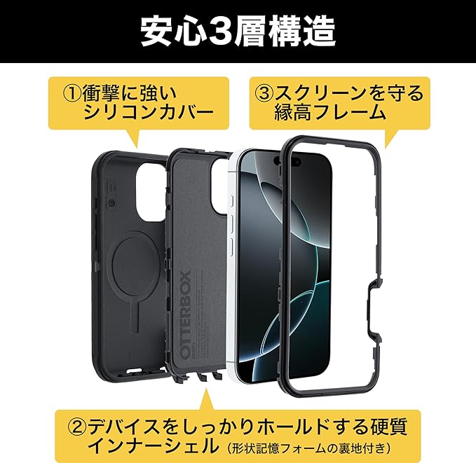 【OtterBox】全米No1ブランド 軍事規格の7倍の強度 iPhone 16 Pro Max用 耐衝撃 衝撃吸収 米軍MIL規格 Magsafe対応ケース Defenderデンバーダスク 【国内正規品】 〔オッターボックス〕