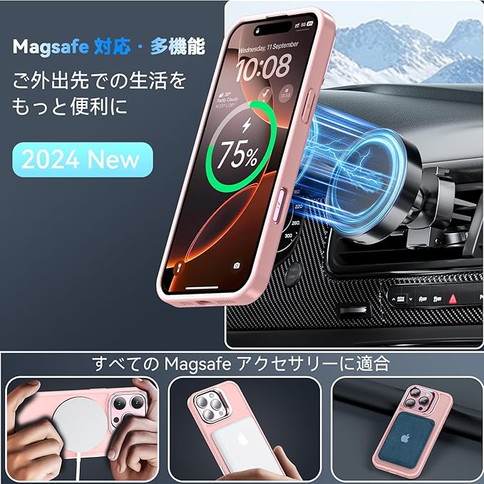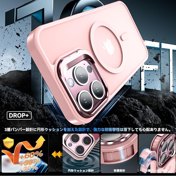 【MagSafe対応&スタンド機能】ケース内部には2024年に新開発された強力なマグネットが搭載されており、吸着力と安定性が向上し、MagSafe充電対応で差し込みのいらない超簡単・超高速充電を実現しています。MagSafe対応アクセサリーもいろいろな iPhone 16 Pro Max ケース!また、カメラの外枠は頑丈なアルミニウム合金材料を用いて開閉しやすい支持枠を作り、スタンドの機能を与え、お好きな角度を調整でき、両手が解放され、いつでもどこでも動画視聴便利です。